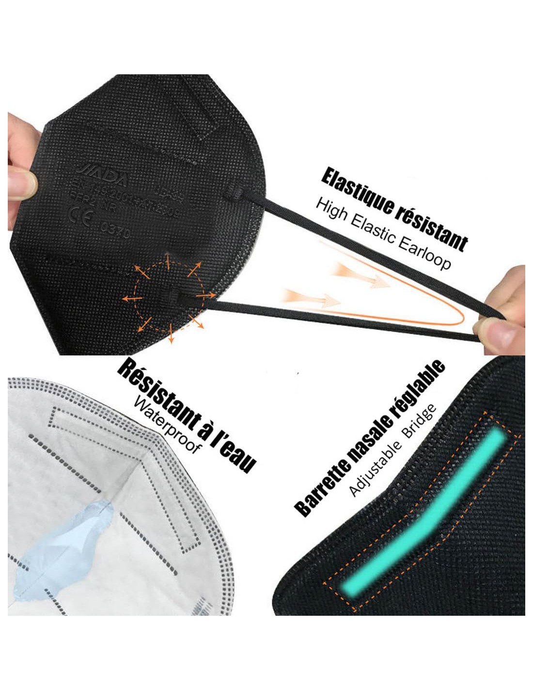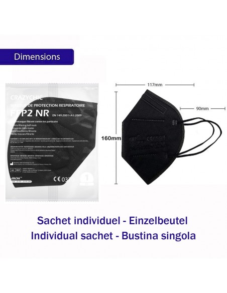 NORME CE: Testé, certifié et conforme à la norme européenne EN149:2001+A1:2009 FFP2 NR. Masque non réutilisable à usage unique. Haute filtration.